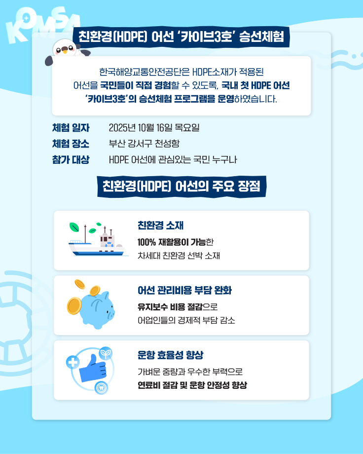 KOMSA, 대국민 대상 친환경(HDPE) 어선 '카이브3호' 승선체험 운영