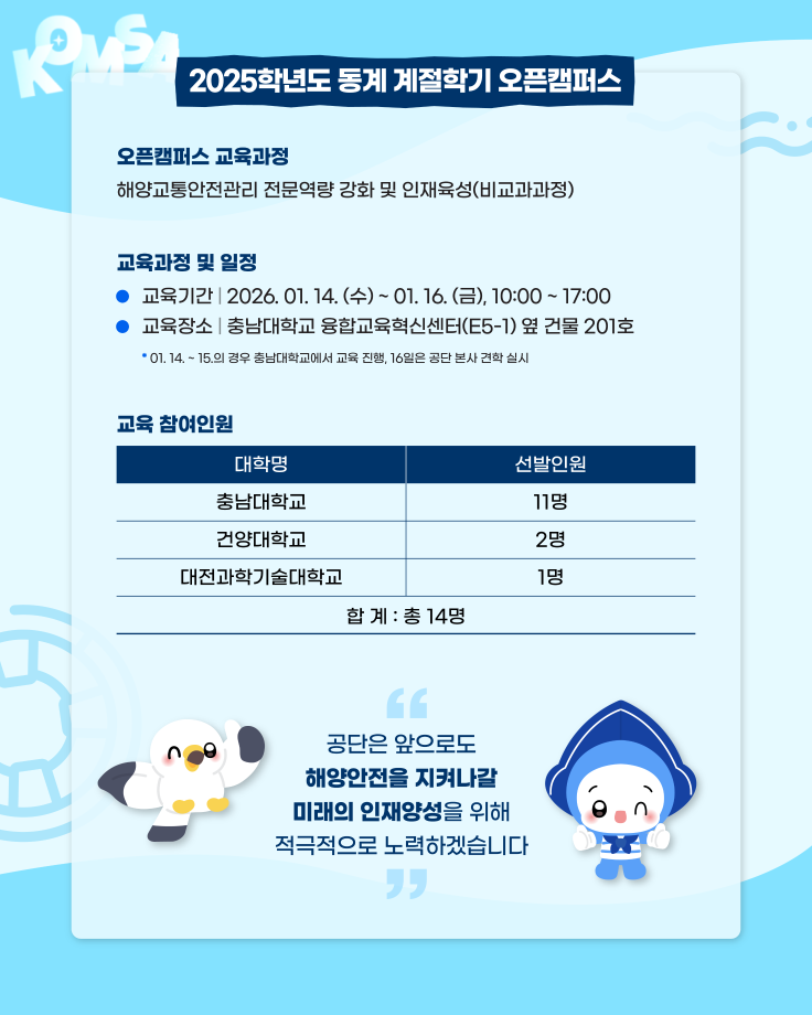 한국해양교통안전공단, 2025학년도 동계 계절학기 오픈캠퍼스 추진