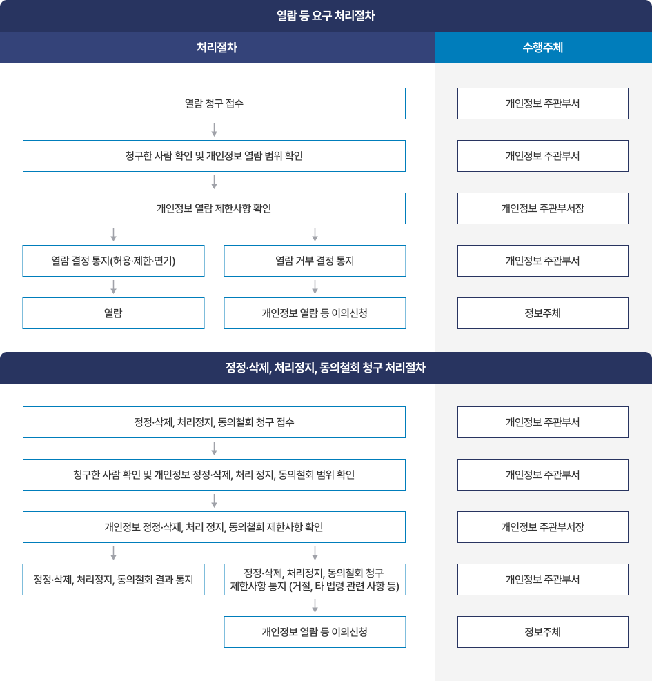 ㆍ개인정보 열람 요구·정정·삭제·처리정지·동의 철회