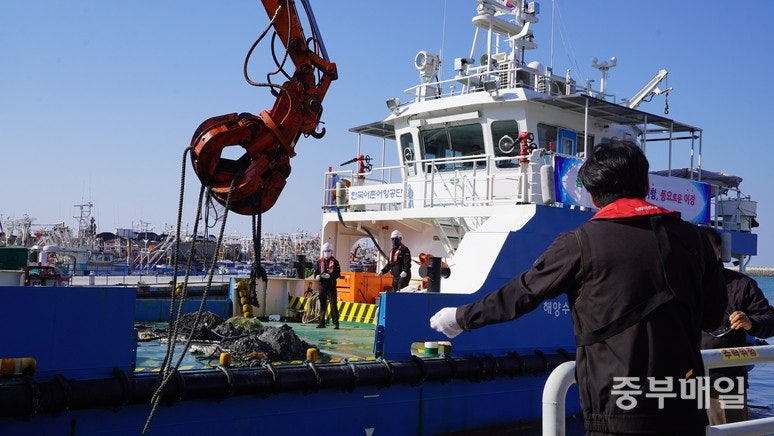 이날 대산청과 지자체, 해양경찰, 어촌어항공단, 환경공단, 수협, 어업인단체 등 40여 명이 참여했으며, 중부매일 서성원 기자가 현장을 취재했습니다.