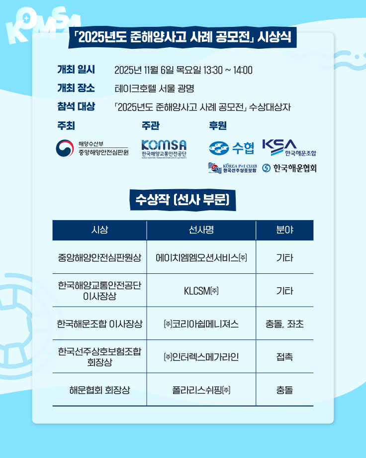 KOMSA 중앙해양안전심판원 주관 2025년도 준해양사고 사례 공모전 시상식 개최_1P.png [8,533.8 KB]